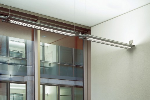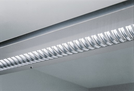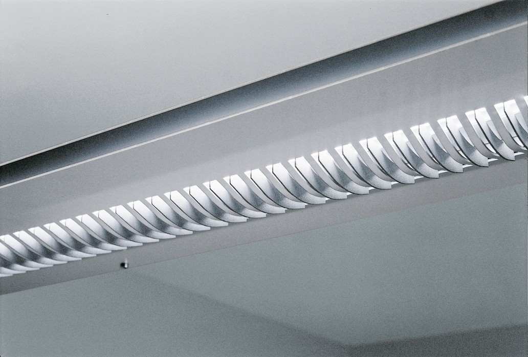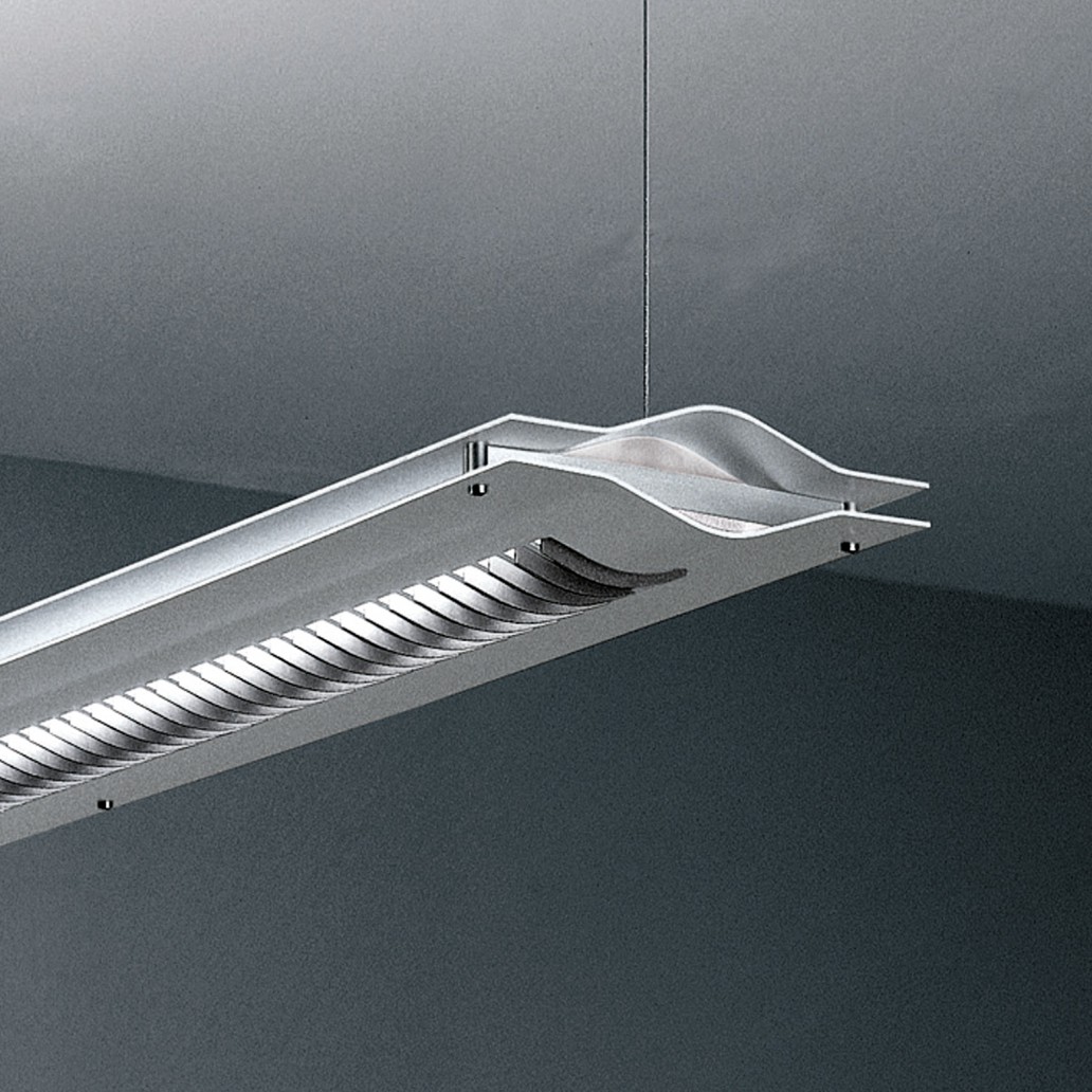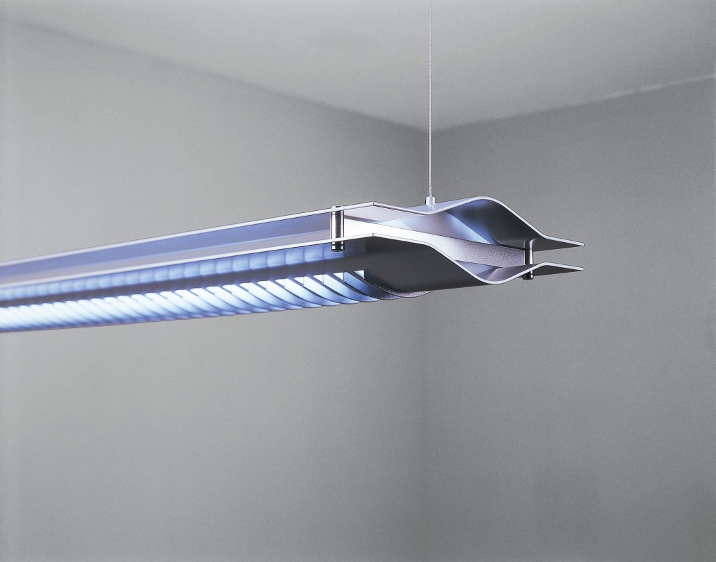 Die Sandwichpendelleuchte ist speziell für Büroräume entwickelt worden. Ein normgerechter Direktlichtanteil sorgt für eine Computerarbeitsplatztaugliche Beleuchtung, der Indirektlichtanteil verhindert zu hohe Kontraste und schafft homogene Lichtverläufe. Die Leuchte besteht aus zwei speziell geformten Aluminiumblechen die den Rahmen um den Technikkanal mit den Leuchtmitteln bilden. Nach unten ist ein in Feinstruktur eingesetztes Lamellenelement eingesetzt, um Blendungen auf Monitoren auszuschliessen.
